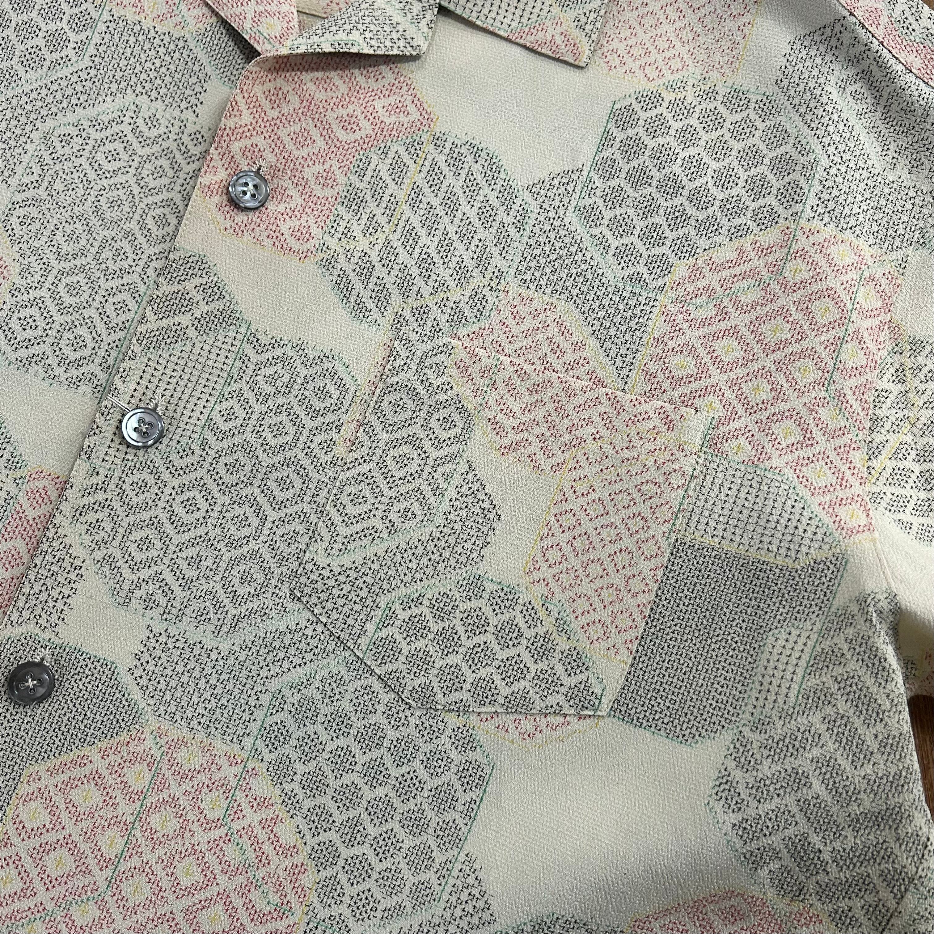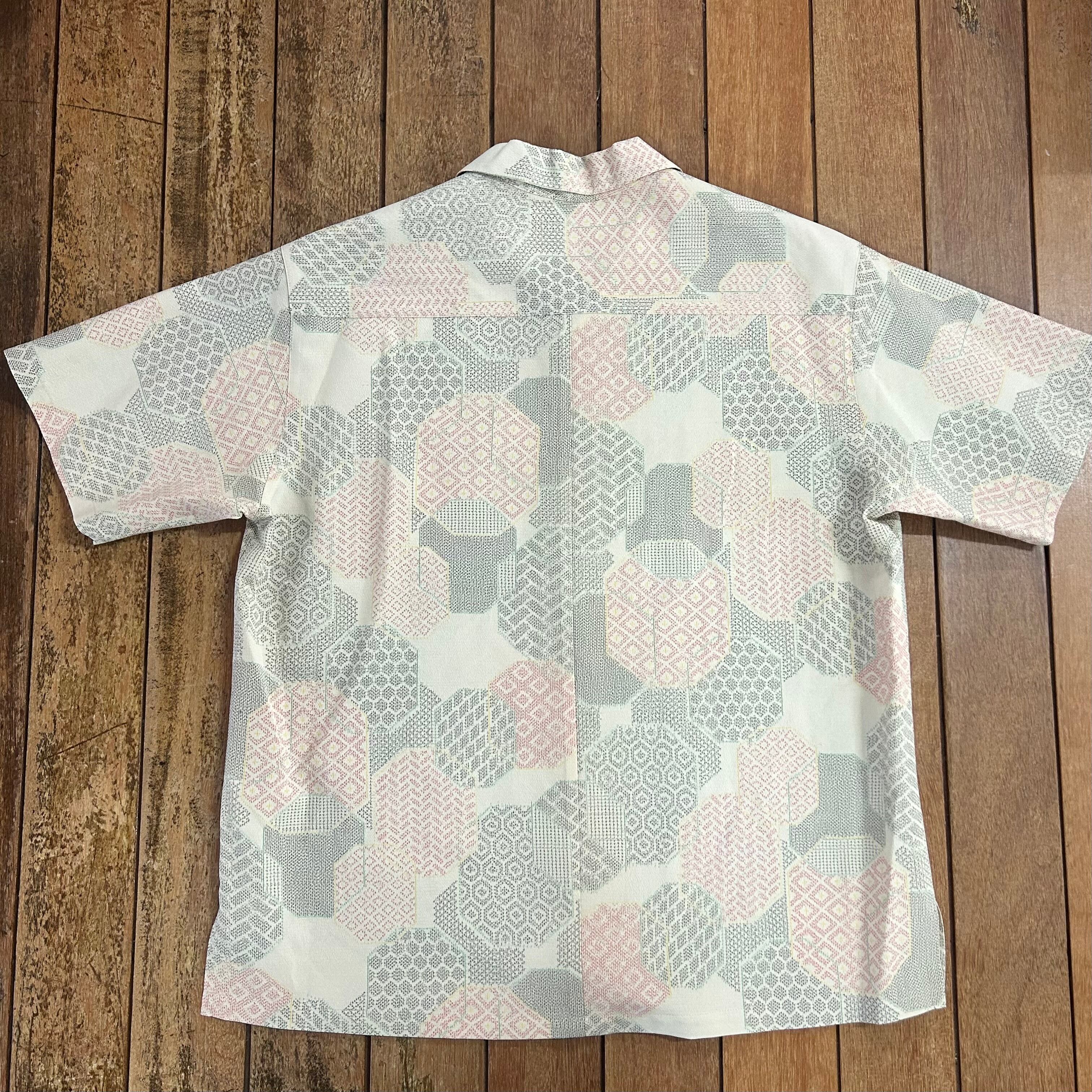 キモノアロハシャツ 紬 2L アイボリー 亀甲 ウオッシャブル